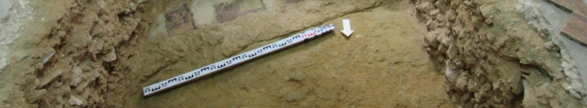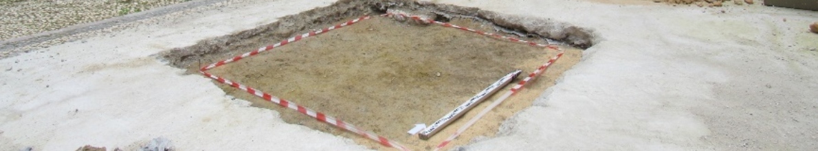 Na sondagem 4 identificámos uma estrutura correspondente ao alicerce do edifício anteriormente existente no local, recentemente demolido, e possivelmente datável de meados do século XX.